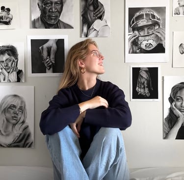 Ik teken van alles en nog wat, van dieren tot mensen. Altijd in zwart-wit. Portretten vind ik het allerleukste om te maken. Ik probeer in mijn tekeningen altijd zo dicht mogelijk bij de realiteit te blijven en leg daarin de focus op de ogen. Naar mijn mening het allerbelangrijkste gedeelte van een portret. Neem vooral een kijkje!
